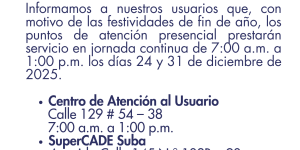 En aras de garantizar el cumplimiento del reglamento técnico operativo para la prestación del servicio público de aseo en la localidad de Suba, informamos a todos los usuarios los ajustes …